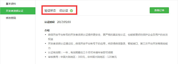 7.申請認證通過后,開發者資質驗證狀態為“已認證”。接下來可以進行支付渠道申請工作了。