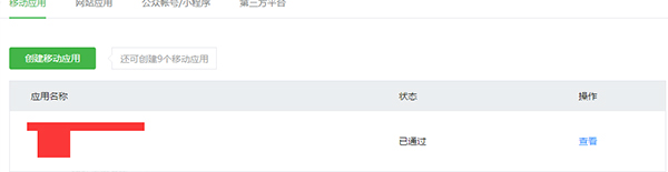 9.審核通過后,應用的狀態就為“已通過”狀態。點擊“查看”進入應用詳情頁面。