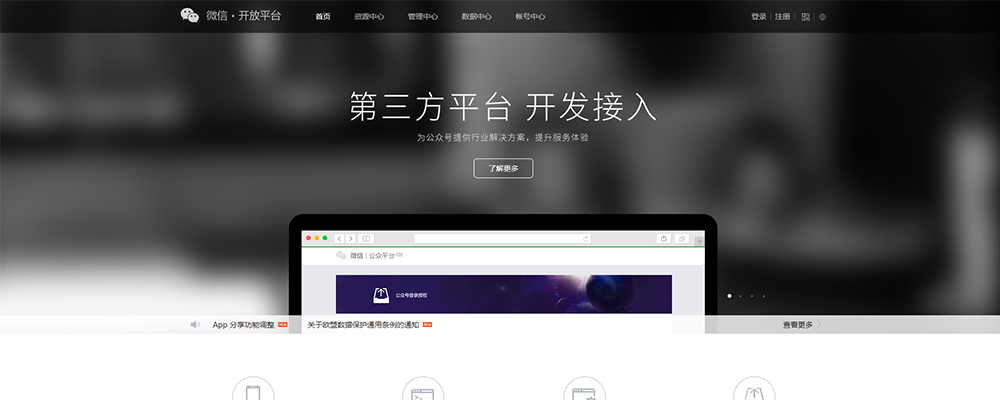 3. 新申請的微信開放平臺 ( https://open.weixin.qq.com/ ) 的賬號和密碼
